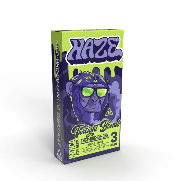 Hold onto your hats, intergalactic adventurers! Prepare to have your minds blown by the HAZE Twilight Blend, a fantastic fusion of THCP, Delta 8, and CBN in a 3-gram rechargeable disposable vape. Revel in the flavorful escapades of Purple Punch as you embark on a wild ride through the cosmos. Crafted in the secret labs of an alternate reality, this one-of-a-kind vape boasts a combination of potent compounds, expertly designed to elevate your terrestrial experiences to new dimensions. The HAZE Twilight Blend is the ultimate travel companion for the daring explorers and time-traveling renegades seeking to venture beyond the mundane. So buckle up and get ready to vape away as you journey through a universe of boundless excitement, pulsating with the hypnotic taste of Purple Punch, an interstellar delight that will leave your taste buds yearning for more.