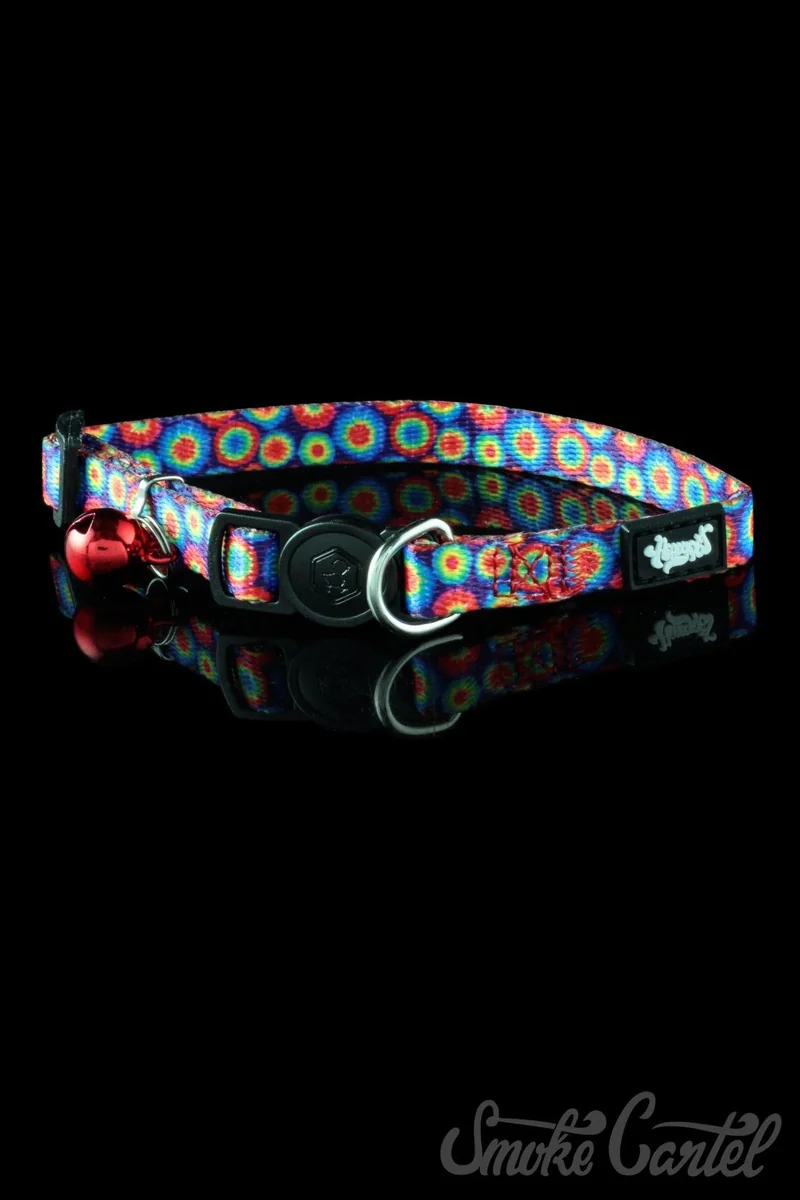 Four legs and 420 friendly!! Heady Pet collars are a stylish accessory for your pet at summer festivals, parks, and vet offices Chrome metal D-ring for durable leash attachment. Care Instructions: Wipe clean. Do not machine wash, iron, bleach, or tumble dry. Non-stretchy materials. For maximum safety, measure your pet’s neck before purchasing and fit two fingers between the collar and neck before adjusting. CAUTION: Not for tie-out. Logo loop tie is for tags or accessories only and is not suitable as a leash attachment. Remove and replace immediately if collar becomes torn or damaged.