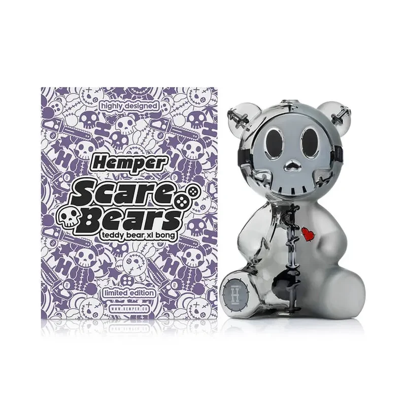 MSRP $149.99 Bring some spooky-cute vibes to your next smoke session with the Scare Bears Teddy Bear XL Bong from HEMPER. Standing tall and full of personality, this oversized glass piece combines playful design with serious function. Crafted from durable, high-quality glass, it delivers smooth, filtered hits through its built-in percolation system while doubling as an eye-catching centerpiece. Part of this month’s exclusive Scare Bears Collection, the Teddy Bear XL Bong is perfect for collectors and daily smokers alike. Whether you’re chasing big rips or simply want a bong that makes a bold statement, this bear’s got your back. Cute, creepy, and undeniably functional—this is one piece you’ll want to cuddle up with all season long. Specs 7.1” Tall x 5” Wide x 3.9” Deep 45 Degree Recessed 14mm Joint Ball Percolator 14mm Clear Bowl Half-Frosted Transparent Black Body