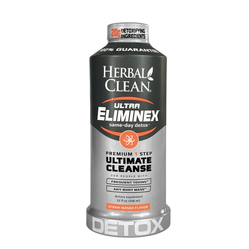 HERBAL CLEAN ULTRA ELIMINEX DETOX 32OZ Experience Herbal Clean Ultra Eliminex Detox 32oz, a comprehensive detoxification solution designed to help cleanse your body of unwanted toxins. This 32-ounce bottle contains a potent formula that combines a variety of herbal ingredients to support your body's natural detoxification process. Ideal for those seeking a thorough cleanse, Ultra Eliminex Detox is designed to be easy to use and effective. Comprehensive Detox Formula: Contains a blend of herbal i