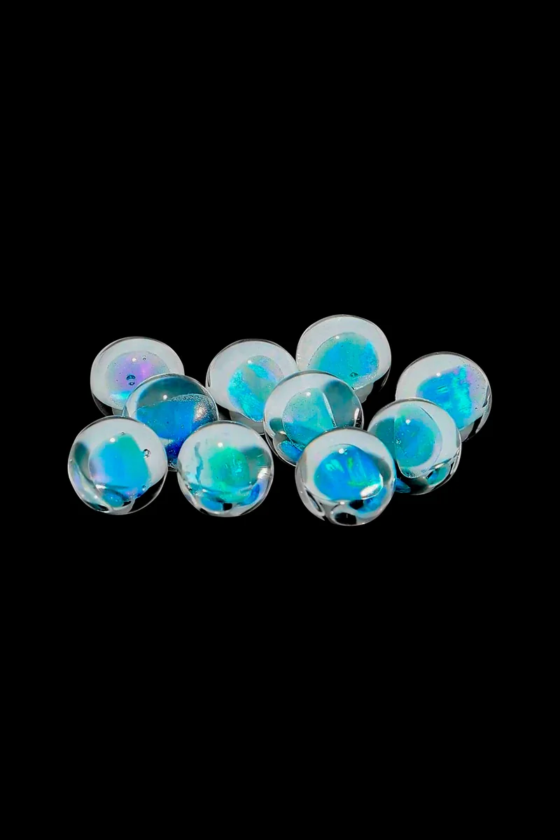 Enhance your e-rig experience with the Blue Opal Terp Pearl by High Five . Made in the USA, this stunning blue opal terp pearl is compatible with quartz e-bangers, auto spinner e-bangers, and orb terp e-slurpers. The terp pearl is available as a single unit or a pair. Choose the number you want when ordering. Note: Does NOT include all the terp pearls shown in the photo.