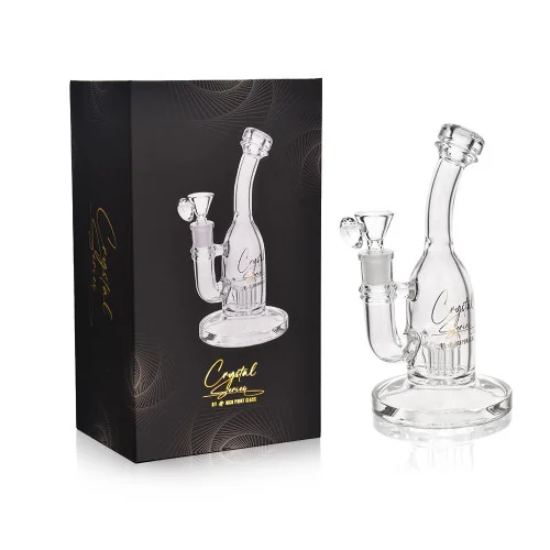 The Crystal Series by High Point Glass - 8" Mini Bottle High Quality Tree Perc Water Pipe - with 14M Bowl & 4mm Banger is a premium smoking accessory. Suggested retail price $100.00. Perfect for retail display and consistent seller. Available at wholesale pricing from Port City Wholesale.