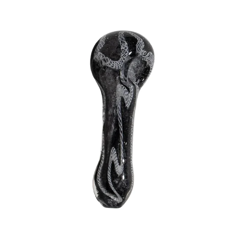 MSRP $9.99 Medium 4″ size, ideal balance of portability and smoke cooling. Black & white raked design with striking line work on solid black glass. Classic spoon shape, comfortable to hold and easy to clean. Classic chamber with carb hole for smooth, controlled hits. Made from heavy-duty durable glass. Design and Color may vary COLOR MAY VARY