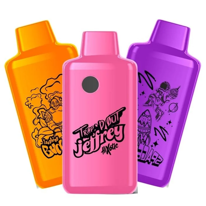 All NEW BLEND! Hixotic brings you Trap'd Out Jeffrey. Are you looking for that perfect Sativa that tastes incredible? If so, our all-new fully loaded Candyland 3 Gram PHC + THC-P + D8 + D9-THCv Disposable is for you. This Disposable is made using advanced materials including a carefully constructed coil that preserves the flavor and allows for smooth hits without the high risk of clogging. You will enjoy a consistent experience that delivers the perfect dose of hemp time and time again. This vape disposable contains 3000mg of hemp and comes full of some satisfying vapor and flavor production all day long. Hixotic's Trap'd Out Jeffrey Disposable Features: Each vape disposable contains PHC + THC-P + D8 + D9-THCv hemp extract in a high-quality 3-gram Disposable. Live Resin. PHC with less than .3% Delta 9 THC. THC-P with less than .3% Delta 9 THC. Delta 8 with less than .3% Delta 9 THC. D9-THCv with less than .3% Delta 9 THC. This device is federally legal, but it's recommended to verify whether or not your state is restricted. Trap'D Out Jeffrey Hixotic Disposable 3G Features: Blend Composition: Contains a potent mix of PHC, THC-P, Delta 8, Delta 9-THCv, and Live Resin for a robust and versatile experience. Strains: Available in various strains, including Candyland (Sativa), Space Cake (Hybrid), Tigers Blood (Indica), and more. Vape Type: 3-gram disposable with high-quality construction, including advanced coil technology to preserve flavor and prevent clogging. Legal Compliance: Federally legal under the 2018 Farm Bill, with less than 0.3% Delta 9 THC. User Experience: Designed for a smooth, consistent vaping experience with satisfying vapor and flavor production. Purpose: Ideal for relaxation and aiding sleep, making it suitable for those seeking a tranquil vaping session. Exotic Flavors: Offers a variety of exotic flavors tailored to different preferences. Nicotine-Free: Contains hemp extracts without nicotine,