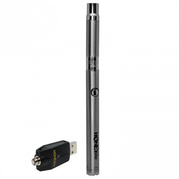 The best beginner budget rechargeable wax vape pen or dab pen that you can buy. Sleek Stainless pen-style dab pen powered by the incredibly powerful and high capacity HoneyStick VV Twist 510 battery allows you to adjust your power with the twist of a knob. Hold that charge for long with the powerful 500 mAh vape pen battery. Quality of construction and feel extends from the battery to the silencer which is a booming wax atomizer for slim batteries. With a nice sized ceramic bowl and a proprietary silicon carbide heater, you have just a perfect wax dab pen, giving you monster rips, smooth pulls, rapid heat-ups and flavor galore. The Body of the dab pen atomizer comes apart for easy cleaning and loading with concentrates. It is designed to virtually eliminate spatter or hot bubbles. All this is a slim sleek, powerful wax pen that remains elegant and discrete and offers big pro power at the beginner's price point. Perfect wax pen for on the go. Slim and light enough to rock it on a lanyard. Turn the power knob to adjust from mild to wild and enjoy the ride.Features: 500 mAh Slim Twist Battery HoneyStick USB charger included Silencer Dab / Wax Atomizer included Adjustable power / variable voltage Rechargeable vape pen battery Slim, Sleek and compact Elegant look with a quality feel Big hits, and big Flavor Rapid heat-up time Proprietary heater design 510 thread VV twist battery