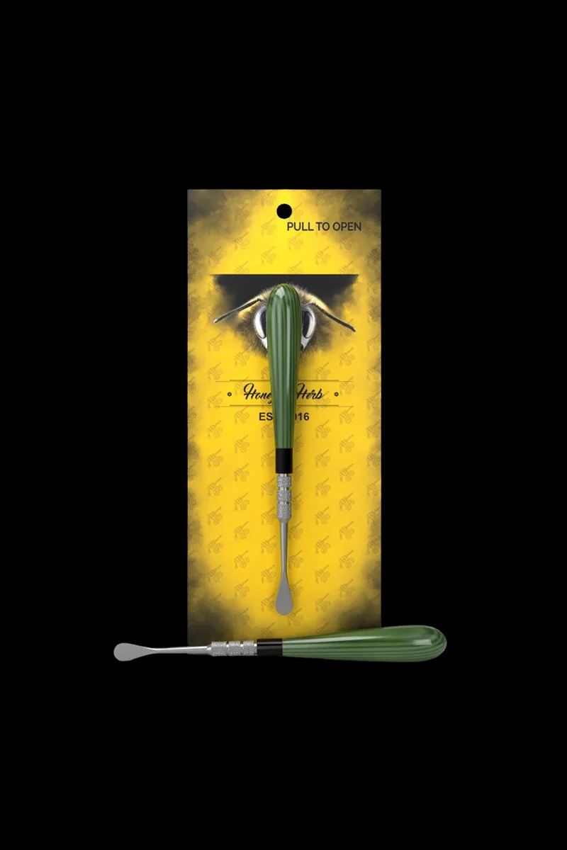 Dabbing is easier and more efficient when you arm yourself with a quality dab tool. The Classic Dab Tool by Honeybee Herb is all about convenience and style. This simple dabber looks great with its colorful glass handle. On the ‘business end’ of the dabber is a stainless steel round tip scoop . This tip makes it quick and easy to scoop and move your concentrate to your banger so you can start your session right away. Pick your favorite from the multiple color options and grab yours today.