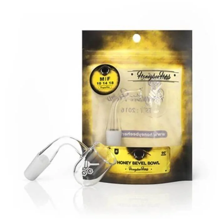 Specifications: Outer Diameter - 25mm. Thickness - 2mm. Edge - Bevel. 90° Frosted Joint. Butane Torch Recommended. Compatible Pearl Size(s) - 4mm, 6mm, 8mm. Recommend Carb Cap(s) - HONEY BUBBLE CAP 25MM & HONEY HIVE BUBBLE CAP Designed for the connoisseur, this piece is the cornerstone for bevels and bowls alike. The offer gets even better as the Bevel Bowl comes with both female or male joints, in addition to coming in all the most common diameter sizes ranging between 10mm and 18mm the Honey Bevel Bowl also comes with a 45° angle design. As with all our products, we recommend the use of a butane torch rather than propane to guarantee being set for the long haul.