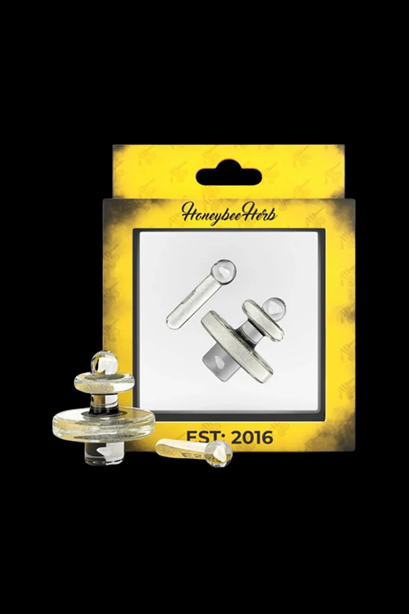 This Opal Galaxy Stardust Terp Slurper Set is out of this world! This Slurper Set features a cap and a mushroom. This Spinner Style Carb Cap comes in this beautiful, eye-catching crushed opal color and is sure to impress! The Opal Galaxy Stardust Terp Slurper carb cap design allows ample movement with terp pearls . The multi-use design allows the cap to be used with or without terp pearls. The Slurper Cap is designed perfectly for even heat distribution and making sure that your product is vaporized effectively, leaving minimal pooling and waste. Material - Glass Universally Compatible - No Cap - 25mm Mushroom - 32mm length Auto Spin - Yes