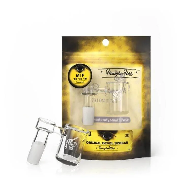 Specifications: Outer Diameter - 25mm. Thickness - 2mm. Base Thickness - 4mm. Edge - Flat Top. 90° Frosted Joint. Butane Torch Recommended. Compatible Pearl Size(s) - 4mm, 6mm, 8mm. Recommend Carb Cap(s) - HONEY HIVE CARB CAP & HONEY TOPPER CARB CAP. All dabbers love insane quartz pieces and with the Original Bevel Sidecar, that’s precisely what you should expect. This quartz banger goes beyond the usual, bringing on a totally innovative aesthetic paired with a 90° frosted joint suspending the chamber. The Original Bevel Sidecar is not a piece you’ll want to put off to the side. It’s safe to say this will become your everyday piece, impressing your friends with its aesthetic and functionality. These come in 10mm, 14mm, and 18mm, and you’ll have the option to choose between a male or a female joint. With these options, you’ll find an easy fit that’s nice and snug on your favorite rig. Order today and enhance your dabbing experience the moment it arrives.
