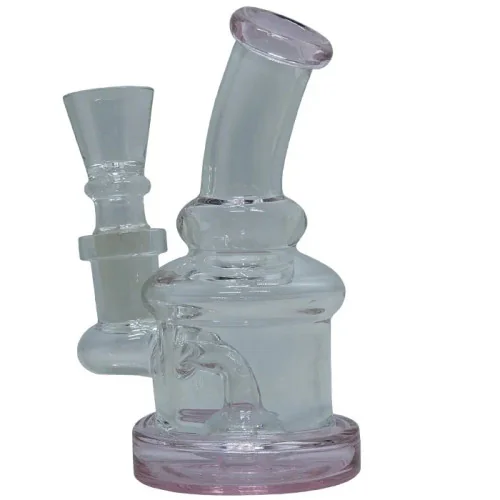 The 4.5" Bent Neck Showerhead Perc Mini Rig Water Pipe - Assorted - with 14M Bowl is a premium smoking accessory. Suggested retail price $20.00. Perfect for retail display and consistent seller. Available at wholesale pricing from Port City Wholesale.