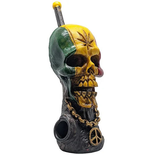 The Resin Rasta Skull Hand Pipe is a premium smoking accessory. Suggested retail price $25.00. Perfect for retail display and consistent seller. Available at wholesale pricing from Port City Wholesale.