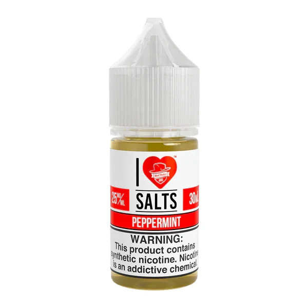 NICOTINE SALTS | Individual Bottles Flavor : I Love Salts Peppermint uses a sweet and icy peppermint taste. Enjoy this terrific mint nic salt vape juice flavor in the premium I Love Salts line. E-liquid contents : 30mL Nicotine Strengths : 25mg and 50mg Blended for use with Pod Systems Browse more E-Liquid Brands Here