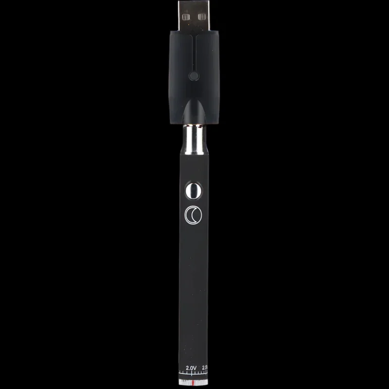 The stylish Jane West 510 threaded battery is compatible with most 510 thread cartridges and features a variable voltage dial, a power button in the center, and our signature moon icon to identify your Night cartridge of choice. After screwing in your 510 thread attachments, turn the battery on using a power button and adjust the dial on the battery base to select your desired temperature. The Jane West battery includes a geometrically shaped USB charger base that is perfectly handy when the battery requires a power boost. *Cartridge not included