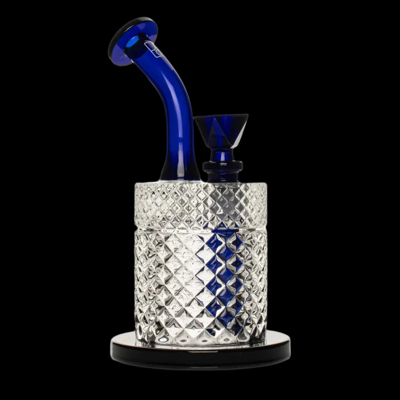Cobalt is back! Looking at the Jane West Twenties Collection Bubbler, it is clear that attention was paid to every detail. The solid, sturdy base and upright design of this water bubbler simplifies use for beginners and daily consumers alike. This water pipe piece comes with a signature, custom bowl, with a triangular design that maximizes your dry flower herb. Adaptable, the water pipe can also fit a banger for use with concentrates. Touch your lips to the ergonomic mouthpiece as the wide chamber fills with thick smoke and inhale to taste what you have been missing. Classic, unparalleled Jane West style combined with modern smokeware functionality make this glass bubbler piece the perfect nod to our Twenties. Removable downstem and custom bowl makes keeping your Bubbler clean simple and easy. SPECS Weight: 2 lbs 11 oz