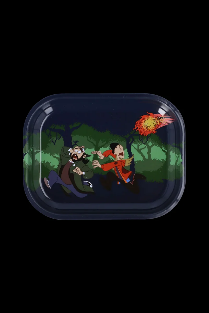 If you’re a fan of Jay & Silent Bob and need a new rolling tray, you should be happy with this one. Made of sturdy alloy metal material, this tray is super durable, plus it has a smooth rolling surface as well as high sides and rounded corners for hassle-free rolling. The On the Run tray features Jay & Silent Bob frantically fleeing through a dense forest. It’s available in Small (7” x 5.5”) and Medium (13.4” x 11”) sizes.