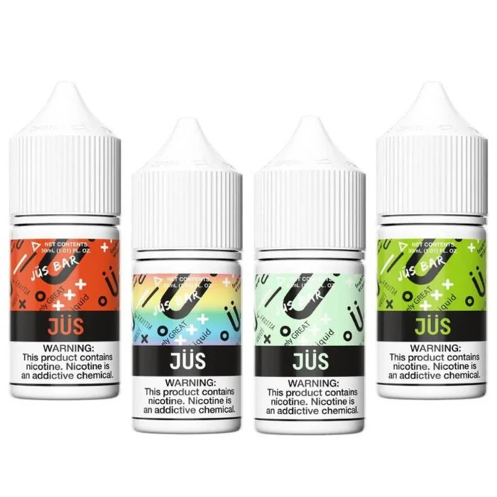 Minimum Order Quantity (MOQ): 5 bottles. Discover the flavorful world of JUS Nicotine Salts, available in 30ml bottles with nicotine strengths of 35MG and 50MG. These high-quality salts offer a variety of unique and satisfying flavors, making them ideal for vape shops seeking to provide a premium, nicotine salt experience to their clientele. JUS Nicotine Salts Flavors: Apple Bourbon Tobacco: A sophisticated blend of rich bourbon-infused tobacco with crisp apple undertones, delivering a robust and smooth vaping experience. Blue Raspberry Cotton Candy: Indulge in the sweet nostalgia of blue raspberry cotton candy, perfectly balanced with a hint of tartness and a sugary finish. Key Lime Cookie: Tangy key lime blended with buttery cookie crumbles, creating a delightful dessert-inspired vape that’s both creamy and zesty. Rainbow Ice: A colorful burst of fruity flavors with a refreshing menthol twist, offering a cool and invigorating vaping sensation. White Grape Ice: Crisp white grapes chilled to perfection with a touch of menthol, providing a clean and revitalizing vape experience. JUS Nicotine Salts Wholesale: JUS Nicotine Salts, available in 30ml bottles with 35MG and 50MG strengths, deliver unique and satisfying flavors. Perfect for vape shops, these high-quality salts ensure a premium nicotine salt experience, making them an excellent wholesale choice.