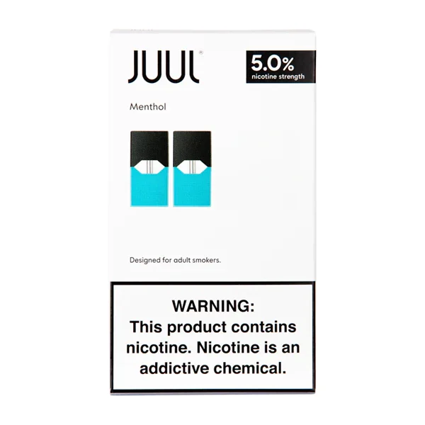 8 PACK OF JUUL PODS The Juul Menthol Pod is a popular choice among vapers that enjoy a cooling vape taste. Compatible only with the Juul Basic Kit, these pods are prefilled with smooth menthol nicotine salt e-liquids. Flavor : Top-selling cool menthol prefilled Juul pods, E-liquid contents : 0.7ml per pod Nicotine Level : 5.0% Master Case Qty : 48 pod packs (6 x 8-packs) Pack Size: 2 pods per individual pack