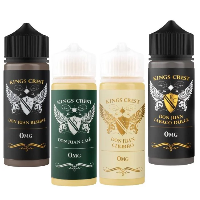 King's Crest E Liquid offers a rich, complex flavor profile in a generous 120ML bottle, ensuring long-lasting enjoyment. With nicotine strengths available in 0mg, 3mg, 6mg, and 12mg, it's easy to cater to a wide range of customer preferences. Each vape delivers a smooth, satisfying experience, making it ideal for vape shops targeting premium e-liquid customers. King's Crest is a top choice for those who demand high-quality flavors that provide a luxurious vaping experience. King's Crest E Liquid Features: Bottle Size: Generous 120ML for long-lasting enjoyment Nicotine Strengths: Available in 0mg, 3mg, 6mg, and 12mg Flavor Profile: Rich, complex blends crafted for a luxurious vape Quality: Smooth and satisfying with every puff Target Use: Ideal for vape stores catering to premium e-liquid customers King's Crest E Liquid Flavors: Blueberry Duchess: The world-famous, award-winning Duchess, now with fresh blueberries. Bread King: A fried cake doughnut with hints of cream and lemon filling. Don Juan Aldonza: A chocolate pecan pie with whipped cream, buttery graham cracker crust, and notes of tobacco & vanilla aged in American oak barrels. Don Juan Cafe: A creamy chocolate mochaccino cafe. Don Juan Churro: A traditional churro covered in chocolate and sugar. Don Juan Peanut: The classic chocolate pecan taste reinvented with a peanut blend. Don Juan Reserve: A graham cracker crusted chocolate butter pecan pie topped with sweet whipped cream. Don Juan Tabaco Dulce: A sweet chocolate tobacco blend combining traditional savory tobacco notes with chocolate. Don Juan Tabaco Honey: Don Juan Reserve flavor elevated with smooth honey tobacco. Duchess: Your favorite creamy tres leches cake, now with marshmallows and butterscotch candy bits. Duchess Reserve: Your favorite creamy tres leches cake, now with marshmallows and butterscotch candy bits. Puddin King: A creamy vanilla pudding mixed with rich caramel and topped with a hint of cinnamon. Strawberry Duchess: The