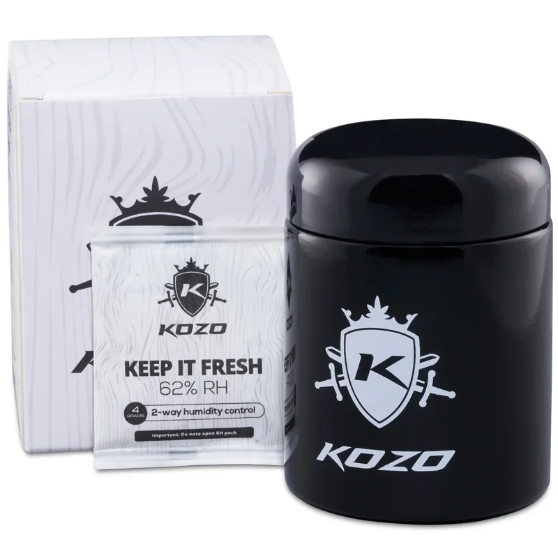 - You Choose Your Size - These jars come in 3 possible sizes - Large 2 oz, approximately 8” x 4”; Medium 1 oz, approximately 6” x 3”; and Small (portable) ½ oz 4” x 3”. Take your pick for your particular use. - Airtight Storage You Can Count On - Kozo brings you a precision-designed, black glass-safe container where you can safely store your stash. This UV Protected container has an airtight lid, which ensures that all flowers stay fresh. - Enhancing The Quality And Freshness Of Your Buds - The Kozo 2-Way Humidifier is a maintenance-free solution that requires no activation. Each packet contains a specially prepared saturated solution of water and natural salts for the most purified humidity control. - Great Quality, Build To Last - Yes, although these airtight jars are made of glass, be assured that they are really tough. We know they’re going to get a lot of use and particularly in the case of the small ½ oz size, they may do a lot of traveling.