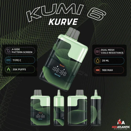 The KUMI Six Kurve 35K Disposable Vape delivers massive capacity and consistent power for a premium vaping experience. With an industry-leading 35,000 puffs, this device features 28mL of 5% SFN, powered by a rechargeable 900mAh battery and advanced dual...