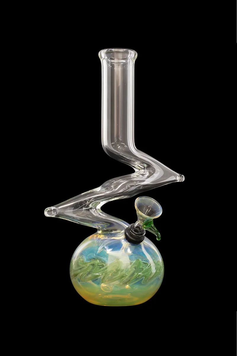 The Zong Bubble Bong by LA Pipes is a true classic you’ll always treasure. This amazing water pipe has been handmade in Los Angeles, California using 32mm thick boro glass tubing. It features a zig zag double zong design that’s been wrapped and raked with color. The result is a glass masterpiece with an incredible form. The Zong Bubble Bong stands 10-inches tall. It has a bubble base smoke chamber with lots of room for your smoke to circulate and smooth on its way upward to the flared mouthpiece for your enjoyment. This is a 14.5mm female-jointed bong that comes with a matching pull-stem flower bowl complete with rubber grommets. It’s available in several fantastic colors.