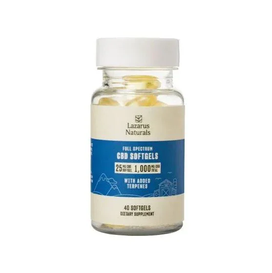 25mg CBD softgel capsules. Available in 10, 40, or 200 count. May take up to 2 hours for full effects, take more as needed. Vegan and gluten-free with no artificial flavors, preservatives or sweeteners. Consult your doctor before use if you have been advised against eating grapefruit Ingredients Organic Flaxseed Oil, Organic Coconut MCT Oil, Full Spectrum Hemp Extract, d-Limonene, Myrcene, Caryophyllene Beta Natural, Vegetable Softgel (Starch, Carrageenan, Purified Water, Glycerin), Tocobiol SF. Contains: Tree Nuts (Coconut)