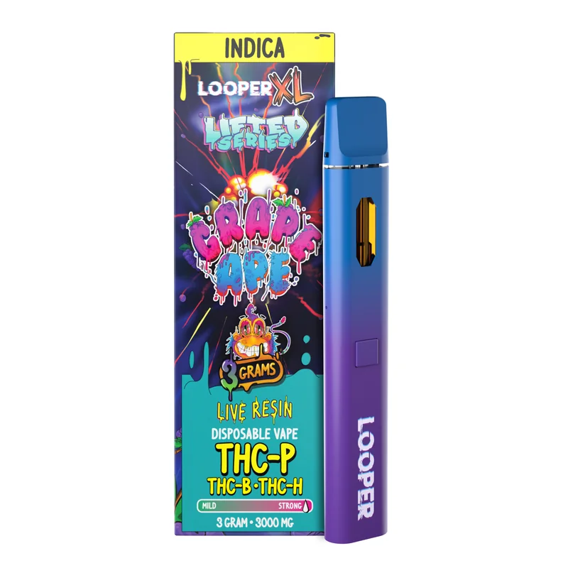 Lifted Series 3G: Grape Ape The Looper Lifted Series 3G: Grape Ape combines bold flavor and dependable design in one sleek disposable. Part of Looper’s Lifted lineup, this 3-gram device highlights everything the series stands for—authentic strain character, balanced formulation, and reliable hardware performance from start to finish. Engineered for Steady Performance The Lifted Series 3G disposable is precision-built for consistent heating and smooth vapor delivery. Every device is tuned to preserve terpene structure and maintain a clean taste through the entire cartridge. The 3-gram capacity offers extended use, while the draw-activated design means no buttons, no charging, and no refilling—just effortless operation with dependable output every time. Each disposable in the Looper Lifted Series is made for users who value reliability, purity, and transparency. From the first inhale to the last, flavor remains steady and clear. Grape Ape Strain Heritage The Grape Ape strain is a classic with unmistakable sweetness and deep berry aroma. Originating from Mendocino Purps × Skunk × Afghani, it delivers a rich fruit profile grounded by subtle earthy tones. Looper’s Lifted Series version captures that full-bodied flavor faithfully, creating a balanced experience that feels both familiar and refined. Flavor Profile Sweet Berry Start: A burst of ripe grape and mixed-fruit sweetness that defines the strain. Earthy Depth: Soft herbal notes that balance out the sweetness for a natural finish. Smooth Finish: A gentle, creamy close that lingers without heaviness. The result is a clean, fruit-forward flavor with the authentic Grape Ape strain character intact—bold yet smooth, simple yet distinctive. Why Choose Looper’s Lifted Series The Looper Lifted Series line merges innovation with attention to detail. Each disposable is made with premium hardware, leak-resistant construction, and carefully refined airflow. The result is a dependable device designed to deliver flavor clarity...