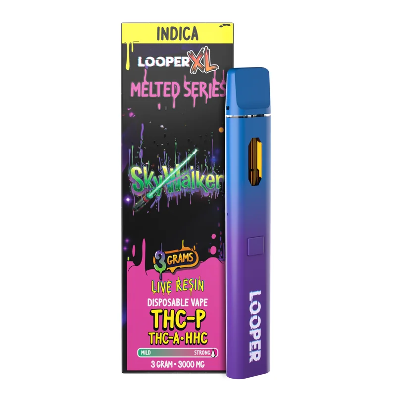 Melted Series 3G: Skywalker OG The Looper Melted Series 3G: Skywalker OG takes a classic strain and builds it into a clean, reliable device that actually lasts. It’s part of Looper’s Melted line—made for people who want strong performance without complicated gear. Three grams of hemp-derived oil sit inside a sturdy, draw-activated pen that’s ready when you are. No charging, no refilling, no fuss. Built for reliability Looper’s Melted Series 3G devices are designed to stay consistent from start to finish. Each one uses balanced heating so the flavor stays even, not burnt or weak halfway through. The hardware is tight enough to prevent leaks but still gives a smooth pull. It’s a simple design built to work the way it should, every time. The 3-gram capacity means longer use compared to standard 1 g or 2 g pens, which makes it practical if you want fewer replacements and steady performance over time. Once finished, dispose of it responsibly or recycle the parts where possible. The Skywalker OG strain background Skywalker OG strain came from crossing Skywalker with OG Kush, creating one of the most recognized flavor lineages in modern hemp. Looper keeps that original terpene profile intact, so you get the familiar taste people associate with Skywalker OG—clean, earthy, and just a touch of citrus. Flavor profile Earthy & Herbal: A grounded base that gives the vapor its depth. Pine Undertone: Adds a bit of crispness, keeping each draw fresh. Light Citrus: Finishes with a subtle brightness instead of heaviness. Nothing artificial here—just a straightforward flavor that stays true to the strain’s roots. Why Looper’s Melted Series stands out The Looper Melted Series was made for people who want dependable devices and solid construction instead of disposable junk. The outer shell is compact enough to pocket easily, and every component is tested for consistency. You’ll notice how the airflow feels controlled—not too tight, not too airy—because Looper tuned it that way. K...