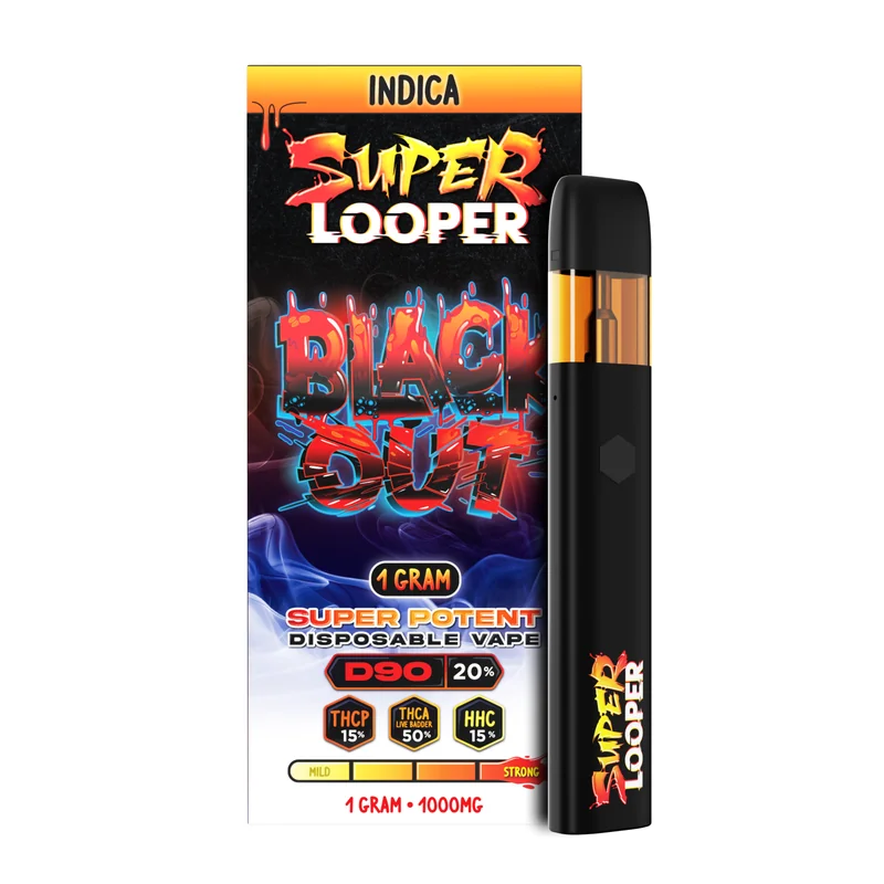 Get ready for a bold and unforgettable experience with the Super Looper 1G: Black Out. Perfect for unwinding or elevating your mood. Strain Type: Indica-dominant for deep relaxation. Dominant Notes: Earthy, sweet, and hints of spice. Volume: 1G premium disposable vape.