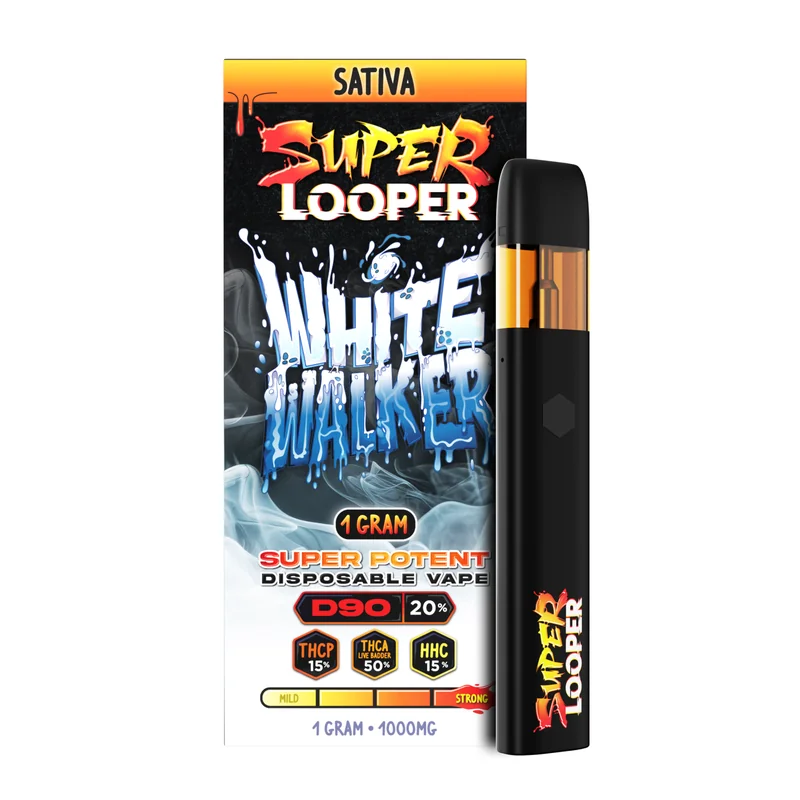 Super Looper 1G: White Walker features the cutting-edge cannabinoid D90, delivering a frosty, invigorating experience that lives up to its legendary name. This strain offers smooth, uplifting effects and a unique flavor profile that perfectly complements its icy reputation. Expect a bold blend of cool eucalyptus, refreshing mint, and a touch of frosty blueberry sweetness, making it a standout choice for any occasion. Strain Type: Hybrid Flavor Notes: Eucalyptus, Mint, Frosty Blueberry Volume: 1G
