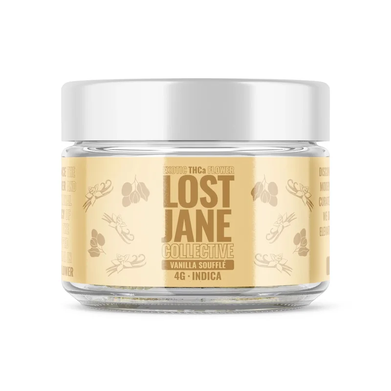Lost Jane Collective THC-A Flower Exotic 4G features 4 grams of high-potency, lab-tested THC-A flower available in indica, sativa, and hybrid varieties. Crafted for discerning cannabis users, this product provides a smooth, flavorful experience with elevated potency. Each jar is sealed for freshness and branded for appeal, making it ideal for customers seeking premium flower. Whether they prefer body-heavy indicas, uplifting sativas, or balanced hybrids, this line meets varied consumer preferences while staying compliant and visually retail-ready. Lost Jane Collective THC-A Flower Exotic 4G Features: Weight: 4 grams per jar Type: THC-A Flower Varieties: Indica, Sativa, Hybrid High Potency: Designed for an elevated experience Lost Jane Collective THC-A Flower Flavors: Biscotti Gushers (Indica) – A sweet, cookie-flavored strain with hints of fruity gushers, delivering a calming and relaxing body high. Cookies and Dream (Hybrid) – A smooth blend of cookies and cream with a balanced effect, offering relaxation with a slight cerebral uplift. Cosmic Cereal (Sativa) – A fruity, cereal-inspired strain that provides an energetic, spacey high perfect for daytime use. Pink Cherry Gelato (Sativa) – Sweet and fruity with cherry undertones, this strain offers a creative and uplifting high. Purple Lemonade (Hybrid) – A mix of zesty lemon and grape flavors, delivering a balanced, relaxing high with a touch of euphoria. Supreme Cream (Sativa) – Creamy and smooth with uplifting effects, ideal for staying focused and productive. Unicorn Cake (Hybrid) – A sweet, cake-like flavor with a perfect blend of euphoria and relaxation. Vanilla Souffle (NEW): Sweet vanilla souffle with a light, airy finish. Cotton Candy Kush (NEW): Sweet, sugary cotton candy with a relaxing effect. Strawberry Taffy (NEW): Sweet strawberry taffy with a fun, uplifting twist. Lost Jane Collective THC-A Flower Wholesale: Lost Jane Collective THC-A Flower Exotic 4G Wholes