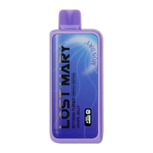 5 PACK OF DISPOSABLE VAPORIZERS Flavor : The Grape Jelly Lost Mary MT15000 provides a burst of sweet grape jam flavoring in every puff. E-liquid contents : 16ml Nicotine Level : 50mg Puffs per Device : 15000 Master Case Qty : 200 (40x 5 Packs) Battery: 600 mAh (Rechargeable via USB-C) Power Mode Settings: Smooth Mode (11W)/ Turbo Mode (22W) Coil: Dual Mesh Coil LED Screen: E-Liquid and Battery Meters Browse more Disposable Vape Brands Here