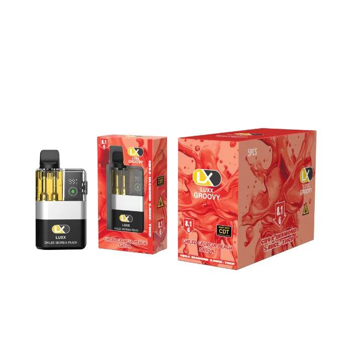 Introducing the Luxx Groovy 8.1gm CB9A + THCP, a cutting-edge cannabis product that blends innovation with luxury. This sleek, disposable device offers a unique dual-flavor experience, perfect for connoisseurs seeking premium quality and versatility. Elevate your cannabis experience with the harmonious blend of CB9A, THCP, all in a convenient, dual-flavor disposable device. Discover the pinnacle of luxury and innovation in every puff. Luxx Groovy 8.1GM is not just a product; it's a sensory adventure, pushing the boundaries of your cannabis experience to new heights. LUXX Groovy Blend Disposable Vape 8.1G Features: 8.1G Disposable Vape: Infused with CB9A, THCP. Dual-Flavor Experience: Offers versatility with two distinct flavors in one device. Premium Quality: Crafted for connoisseurs seeking a luxurious and innovative vaping experience. Convenient & Sleek Design: Disposable and easy to use, perfect for on-the-go vaping. Cutting-Edge Cannabis Blend: Combines the potency of live resin and liquid diamond for a unique sensory adventure. Experience the fusion of flavors and the finest cannabis extracts with Luxx Groovy 8.1GM, where every puff is a step into luxury and innovation.