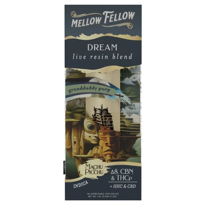 Immerse yourself in the Mellow Fellow Dream Live Resin Blend Machu Picchu Disposable 1G, expertly curated with a blend of Delta 8, CBN, and THC-P. Elevate your vaping experience with this precisely crafted disposable vape, offering a harmonious fusion of cannabinoids. Unwind and explore the dreamy essence with Mellow Fellow's premium formulation in every 1G disposable.