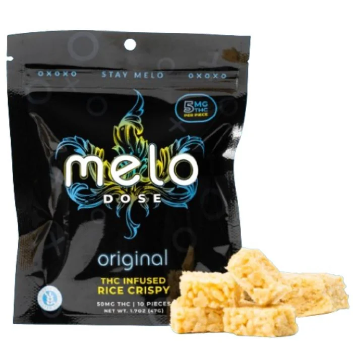 Bring back your best childhood cereal memories with these delicious Melo Dose 50mg Delta-9 THC rice crispy treats. We’re keeping it OG with that sugary, crunchy goodness, only this time we’re infusing American-made, hemp-derived Delta-9 THC. It’s like you bounced on a trampoline but forgot to come down. One piece of this treat has you floating for hours. With less than 0.3% THC, these sweet marshmallow rice crispies are federally legal and safe to explore. Welcome to Melo Dose.