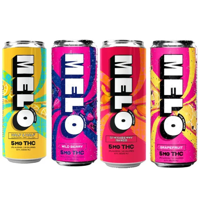 Melo THC Seltzer provides a refreshing alternative with 5mg of hemp-derived Delta-9 THC per can. Available in bold flavors like Grapefruit and Berry blends, this non-alcoholic drink is perfect for socializing or unwinding. Each 6-pack offers convenient, low-dose THC for mindful consumption, formulated for consistent quality. Elevate your refreshment game with this sophisticated beverage that promotes wellness without the hangover. Melo THC Seltzer Features: Hemp-Derived Delta-9 THC: Each can is infused with 5mg of hemp-derived Delta-9 THC for a refreshing, subtle THC experience. Refreshing Flavor Options: Enjoy bold, zesty flavors like Grapefruit and Berry blends that capture the essence of adventure and relaxation. Low-Dose THC: Perfect for mindful, responsible consumption with a gentle lift for socializing or unwinding. 6-Pack Convenience: Each pack contains 6 cans, ideal for personal use or stocking up. Non-Alcoholic Alternative: A sophisticated, wellness-focused choice without the hangover. Consistent Quality: Formulated in partnership with Peak Processing for unmatched consistency and taste. One Box contains 6 cans. One Case contains 4 boxes (24 cans total) Melo THC Seltzer Ingredients: Carbonated filtered water. Cane sugar. Natural flavors. Citric acid, potassium sorbate (preservative), sodium benzoate (preservative). Hemp-derived Delta 9 THC. Melo THC Seltzer Flavors: Grapefruit: A bold, tangy citrus explosion with the perfect balance of sweet and sour, offering a refreshing burst of zesty flavor in every sip. Wild Berry: A delightful blend of ripe, juicy berries delivering a sweet and tart taste that feels like a handful of freshly picked fruits. Half & Half Lemonade & Ice Tea: The ultimate fusion of sweet lemonade and smooth iced tea, combining the best of both worlds for a crisp, refreshing drink. Strawberry Mango: A tropical twist pairing the sweet, succulent taste of ripe strawberries with the vibrant, juicy flavor o