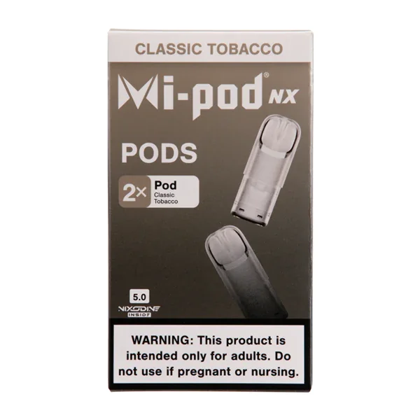 Mi-Pod Nixodine Replacement Pods These are prefilled Nixodine Pods and only compatible with the Mi-Pod Blade and Petal kits. Not compatible with the Mi-Pod Pro or Mi-Pod 2.0 Refillable Pod Kits Flavor : Classic Tobacco Mi-Pod 2-packs contain Nixodine, a satisfying nicotine alternative, and are compatible with the Blade and Petal Mi-Pod kit. E-liquid contents : 2ml Anti-Leak Pod Mesh Coil Visible E-Liquid Level Nixodine 5.0 Nixodine is a patented non-nicotine blend which provides a comparable experience to nicotine. Related Links Mi-Pod NX Nixodine Collection Shop Nixodine Collection *Warning: Nixodine Could Be Habit Forming.*