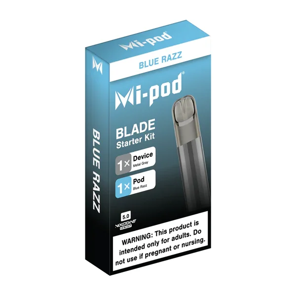 Mi-Pod Nixodine Starter Kit These are prefilled Nixodine Pods and only compatible with the Mi-Pod Blade and Petal kits. Not compatible with the Mi-Pod Pro or Mi-Pod 2.0 Refillable Pod Kits Flavor : This Mi-Pod Blade Starter Kit is sold with one device and one pod, making it a perfect device for customers seeking flavor and the satisfaction of Nixodine. Nixodine is a nicotine alternative designed that is both nicotine and tobacco free. Blue raspberry ice flavors abound in every puff. E-liquid contents : 2ml Battery: 380mAh Anti-Leak Pod Mesh Coil Visible E-Liquid Level Nixodine 5.0 Nixodine is a patented non-nicotine blend which provides a comparable experience to nicotine. Related Links Mi-Pod NX Nixodine Collection Shop Nixodine Collection *Warning: Nixodine Could Be Habit Forming.*
