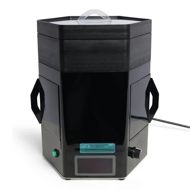 See PDF on this New Model King Kone USA Model! SMARTER THAN YOUR AVERAGE PRE-ROLL MACHINE The King Kone pre-roll cone filling machine is perfect for small farms or companies just expanding into pre-rolls. Unlike its 3-D printed counterpart, this metal King Kone pre-roll machine is more solid and heavy-duty. However, this model is still budget-friendly, as well as extremely versatile, and easy to use. This pre-roll machine comes with all the attachments, so it can pack half-gram 84mm pre-rolled cones, 3/4 gram 98mm pre-rolled cones, and 1 gram 109mm king-sized pre-rolled cones. All you have to do is set up the proper cone filling trays, load the cones, and start filling the top tray with your ground flower. There is an adjustable knob, which will control how hard and fast the cone filling machine is packing. Once filled, just tamp to your desired pack and twist or fold the pre-roll closed! With a capacity of 169 cones, you’ll be producing pre-rolls at scale in no time. Comes with a Modular Design King Kone comes with a modular design which allows any of the parts to be easily replaced if worn out Vibrating box with a Control Panel King Kone comes with a vibrating box which has a control panel built in it Comes with a switch to operate King Kone has an easy to handle switch to operate the King Kone Machine Works with All Standard Sizes King Kone Pre-Roll Machine works with all available standard sizes as well as custom designed trays. One of the great benefits of King Kone is that it is compatible with 109, 98 & 84mm cones. Affordable Cone Filling Machine King Kone Pre-Roll Machine comes with an affordable range of prices. Bundle Discounts King Kone Pre-Roll Machine offers bundle discounts on products. Vibrating box with a control panel on the side. Two overflow containers that catch any excess material which doesn’t make it into the cones. A cover shield to secure overflow containers in place. An 84mm, 98mm tray and an additional extention tray to add a 109mm tray...