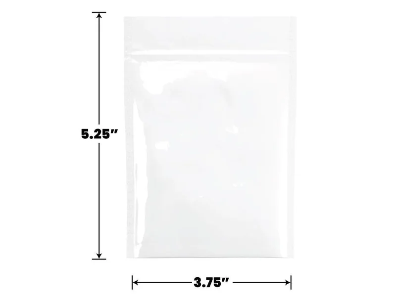 These Mylar zipper bags serve a variety of purposes for the needs of all dispensaries. For those who need a nice zipper pouch or bag in specific gram or ounce sizes, you would be able to select from a variety of baggie sizes to suit your specific needs. These were for retail marijuana, medical marijuana medication, or for tamper proofing concentrate containers for wax, dabs, and oil concentrates. 100 to 50,000 Count Size: 3.75" x 5.25" x 1.5" Sticker Area: 3.25" x 3" Color: White (White Front and White Back) Capacity: 1/8th ounce This Bag is Heat Sealable Ideal for Edible or Flower Packaging What size Mylar Bag do I need? Glossy Finish Square Corners Opaque in color so it's naturally UV blocking! Our Mylar Bags are available in the following sizes and varieties: 1 Gram 1/8 Oz 1/4 Oz 1/2 Oz 1 Full Oz Large Bags Edible Bags Vacuum Bags Preroll Bags Child Resistant Bags Exit Bags Bags are Pre-Zipped to Ensure a Sanitary Interior, Protect Against Dust, Debris, and Handling During Transit For other answers to questions people also ask, head over to our FAQ and People Also Ask section.