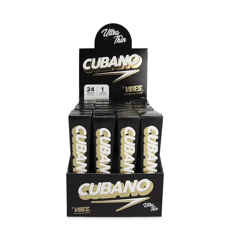 MSRP $2.99 PER PACK Each box contains one single cone that can be packed with over 8 grams of dry herb. These cones are ideal for passing around a large group, like at a music festival or camping trip. The Cubano is crafted from hemp paper with no added calcium carbonate and features an all-natural gum from the Acacia tree to seal it shut. 24 Packs Per Box-1 Cones Per pack 24 Total Cones Available in Ultra Thin, Organic Hemp, or Hemp Cones King Size Cones Slow and Even Burn