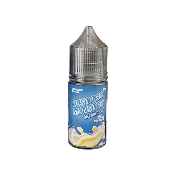 CUSTARD MONSTER SALTS Flavor: Wholesale Blueberry Swirl Edition Custard Monster Salts are available in a unique blend of ripe blueberry and smooth custard flavors. This premium vaping experience is brought to you by Orlando based Monster Labs. E-Liquid Size : 30ml Nicotine Levels : 24mg, 48mg VG/PG Ratio: 50/50 Product of Monster Labs in Orlando, FL Browse more E-Liquid Brands here