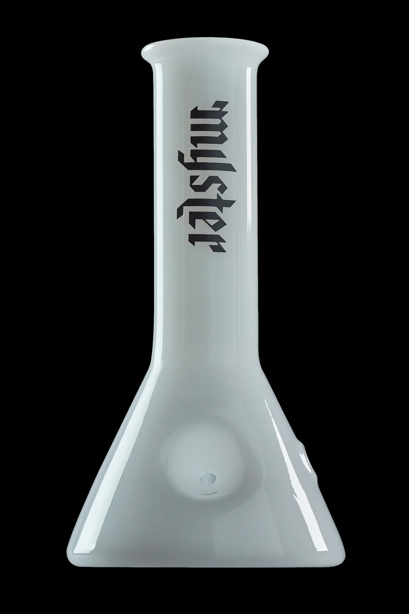 The team at Myster took the classic beaker-style water pipe form and shrunk it down to make the Beaker Bowl Hand Pipe . This 5-inch long standup-style hand pipe will last you a good long time thanks to it being made of thick and durable borosilicate glass. The Beaker Bowl Pipe has a deep bowl to accommodate plenty of your ground herbs and a left side carb hole for airflow control. The pipe fits perfectly in your hand and feels great with its smooth glass construction. When you’re not using this cool pipe, you can set it upright on your table without worrying about it rolling away or spilling over your flower. It’s available in Blackout, Snow White, and Cobalt Blue. The pipe is adorned with the Myster brand logo.
