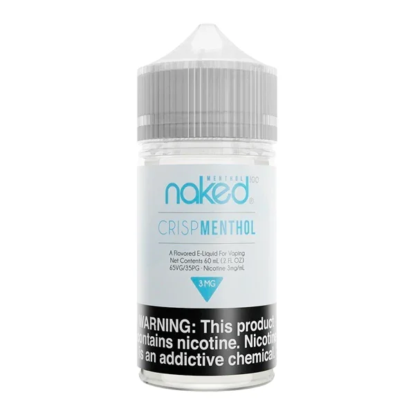 Naked100 eJuice Flavor: Dive into a refreshing experience with Crisp Menthol Naked 100 vape juice. This cold mint and menthol vape delivers a cooling breeze with every puff. The simplicity of its cold flavor is what makes Crisp Menthol stand out, offering an unadulterated, clean, and refreshing vaping experience. E-Liquid Size : 60ml Nicotine Level : 3mg · 6mg VG/PG Ratio: 65/35 Browse more E-Liquid Brands here Sold in a 60ml bottle, Crisp Menthol is an essential addition to any vape lineup. It embodies the brand's commitment to quality and variety, easy on the coils and intricately formulated. Naked 100 is a renowned name in the vaping industry, celebrated for a diverse portfolio that caters to every flavor preference. From the tropical and fruity to the rich and creamy, the brand has a flavor for everyone. With a 70/30 VG/PG ratio, Crisp Menthol Naked vape juice is great mod fuel, but is also suitable for refillable pod kits with a 3 and 6mg nicotine strength.