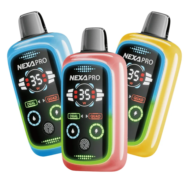 The NEXA Pro delivers an exceptional vaping experience with 5% nicotine strength and a powerful 35W output. Its 3.2-inch HD screen and adjustable airflow offer a tailored session, while the rechargeable battery and Type-C port ensure reliable use. Ideal for both MTL vaping and cloud chasers, it combines versatility with advanced features. The NEXA Pro 30,000 Puff Disposable is a revolutionary device in the vaping world. Featuring Quadruple Mesh Coils, it delivers a powerful 35W output for an intensified session. The Quad Mode ensures maximum power and satisfaction, while the rechargeable integrated battery and Type-C fast recharging offer convenience and longevity (cable not included). The device's dual/quad mode functionality allows for a personalized experience, achieving up to 35W max output power. The 3.2-inch HD screen makes tracking settings easy, and the adjustable airflow and output power enable you to fine-tune your draw for the perfect balance of flavor and vapor. NEXA Pro Vape Features: Rechargeable Integrated Battery. Pre-Filled E-Liquid. 5% Nicotine Strength. Dual/Quad Mode: 35W Max Output Power. 3.2-inch HD Screen. Adjustable Airflow. Adjustable Output Power. Type-C Charging Port (Cable Not Included). Draw-Activated. MTL Vaping. NEXA Pro 30000 Flavors: Blue Razz Icy: A refreshing blend of blue raspberry and menthol. Blueberry Watermelon: A sweet combination of blueberries and watermelon. Frozen Strawberry: A cool mix of strawberries and icy menthol. Grape Burst: The juicy flavor of ripe grapes. Kiwi Sunshine: A tangy kiwi delight. Mexico Mango: The rich taste of ripe mangoes from Mexico. Miami Mint: A classic mint flavor from Miami. Peach Mango Watermelon: A luscious blend of peaches, mangoes, and watermelon. Pink Lemon: A refreshing mix of lemonade and tropical fruits. Sour Apple Icy: A tart blend of green apples and menthol. Strawberry Kiwi: A fruity fusion of strawberries and tangy kiwis. Strawberry Watermelon Pear: A juicy mix of strawberries, w