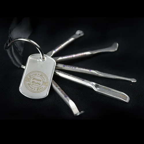The Happy Daddy Slinger is the ultimate key chain! The Slinger features a 22.5″ lanyard with five grade 2 Titanium dabbing tools. Tools included – The Shatter Paddle The Crystal Ball The Buddah Bomb The Globfather The Baby Buddah