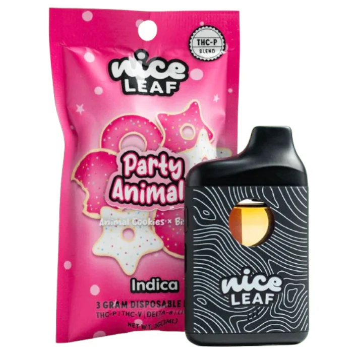 The Nice Leaf THC-P Vape 3G offers a premium vaping experience with a blend of potent cannabinoids, including THC-P, THCv, Delta-8 THC, and Live Resin. Whether you're looking to unwind, relax, or have fun with friends, this discreet and rechargeable disposable vape is your perfect companion. With a lab-tested formula ensuring purity and potency, it’s designed to provide smooth, euphoric effects with every puff. Features: Disposable Vape Capacity: 3G Terpene Profile: Euphoric, Relaxed, Sleepy, Tingly Low Profile & Discreet Rechargeable / Non-Refillable Lab-Tested Purity & Potency Flavors: Party Animals (Indica): Animal Cookies x BiscottiExperience total relaxation with this blend of two powerhouse indica strains. Party Animals offers a nostalgic taste of circus animal cookies, perfect for unwinding and chilling out. A smooth, relaxing vape for any moment of relaxation or social fun. Jungle Joose (Hybrid): Purple Tangie x Pink RozayThis tropical-inspired flavor delivers a sweet tangerine and orange mimosa taste. A fizzy burst of energy and bubbly relaxation, Jungle Joose is perfect for an uplifting vibe, followed by a mellow body relaxation. The ideal disposable vape for a fun, energizing session that winds down perfectly. Enjoy high-quality relaxation with every puff!
