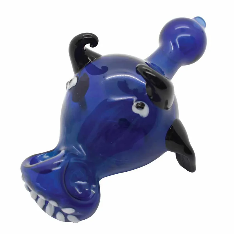MSRP $19.99 The Artistic Design Glass Bull Hand Pipe is sure to please. It has a really cool artistic design on it. The body is made of Glass. This unique piece will stand on it's own on the shelf. Material: Glass Style: Animal Type: Hand pipe Color: Blue Color May Vary (1 Count, 5 Count OR 10 Count)