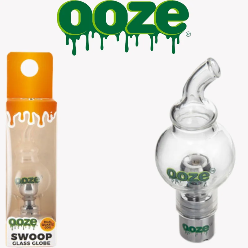 OOZE SWOOP GLOBE ATTACHMENT The OOZE Swoop Globe is the ideal vaporizer attachment to elevate your regular old vape pen battery to a complete wax pen set up for all your concentrates. Made of hand-blown glass, this globe includes an OOZE domed dual quartz coil for optimal taste and great airflow. The swooped mouthpiece sits at the perfect angle to comfortably take your hit, while the large, round chamber flawlessly milks your hit each and every time. This attachment is easy to clean and even eas
