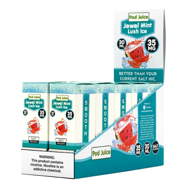 NICOTINE SALTS | PACK OF 10 Flavor : Lush Ice by Pod Juice is an exotic watermelon flavor that exhibits an icy menthol rush. Each hit provides a crisp, cool, and fruity-all-day flavor. Unlike many other flavors that become dull, our Lush Ice will invigorate your taste buds with each and every hit. E-liquid contents : 30mL Nicotine Strengths : 20mg, 35mg and 55mg Blended for use with Pod Systems Browse more E-Liquid Brands Here